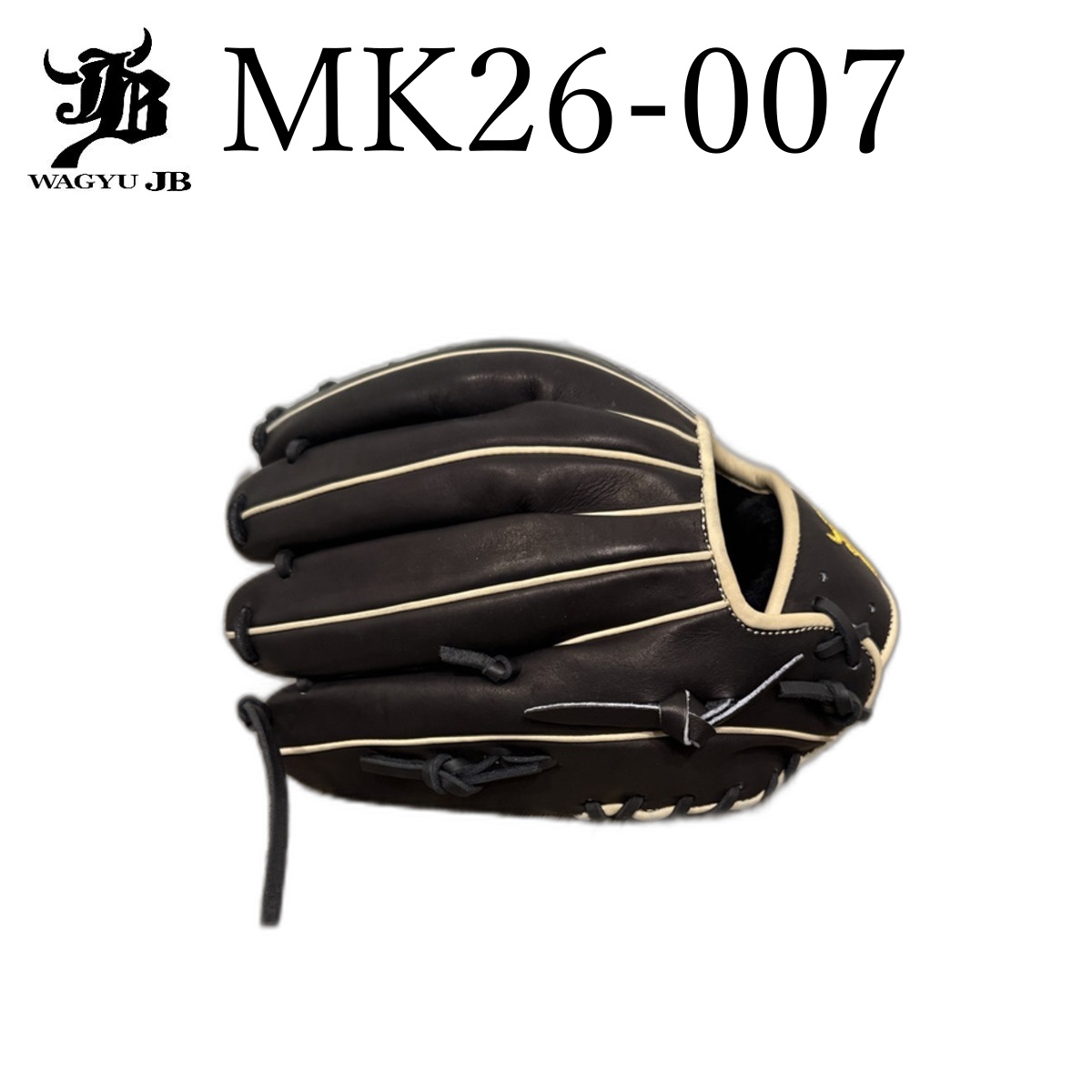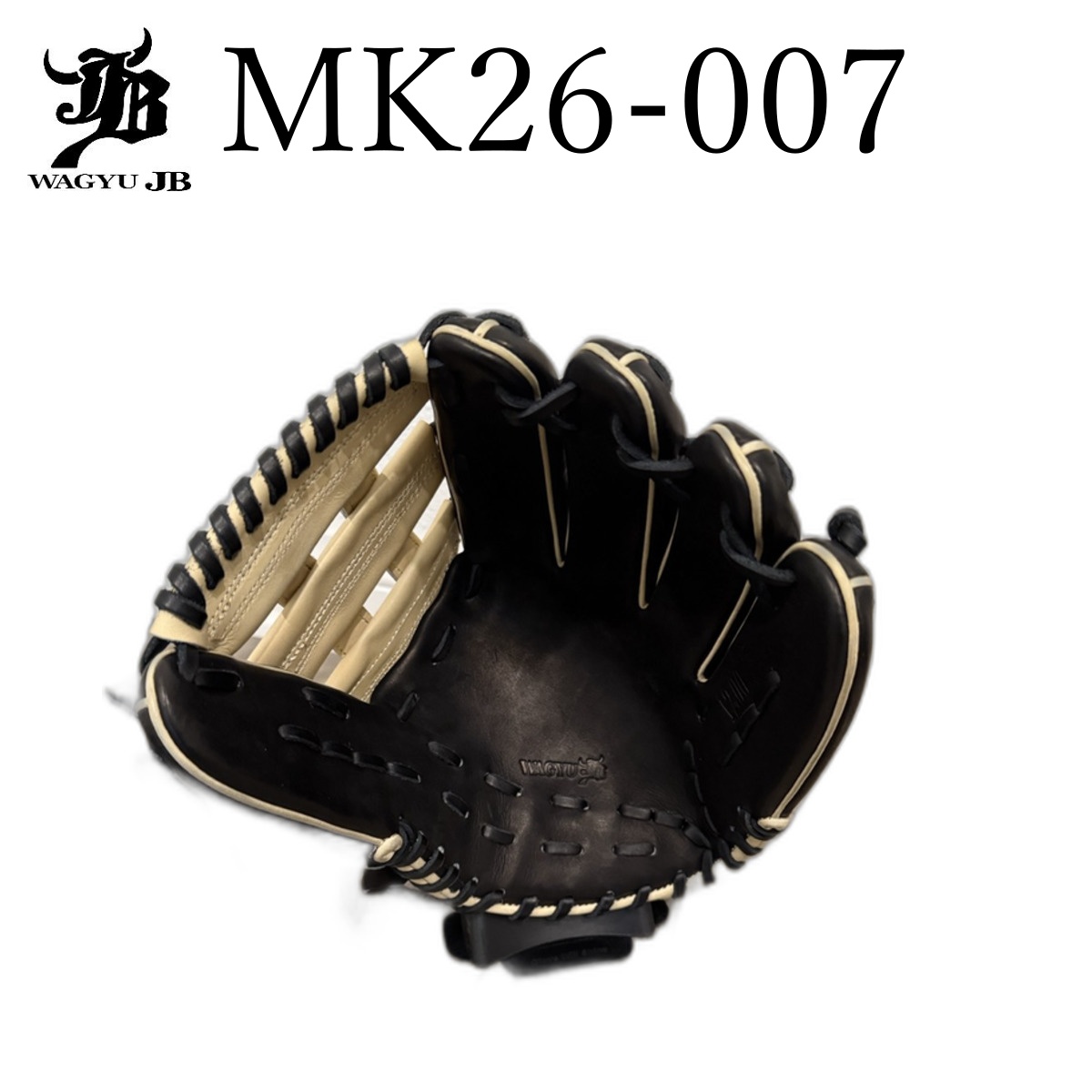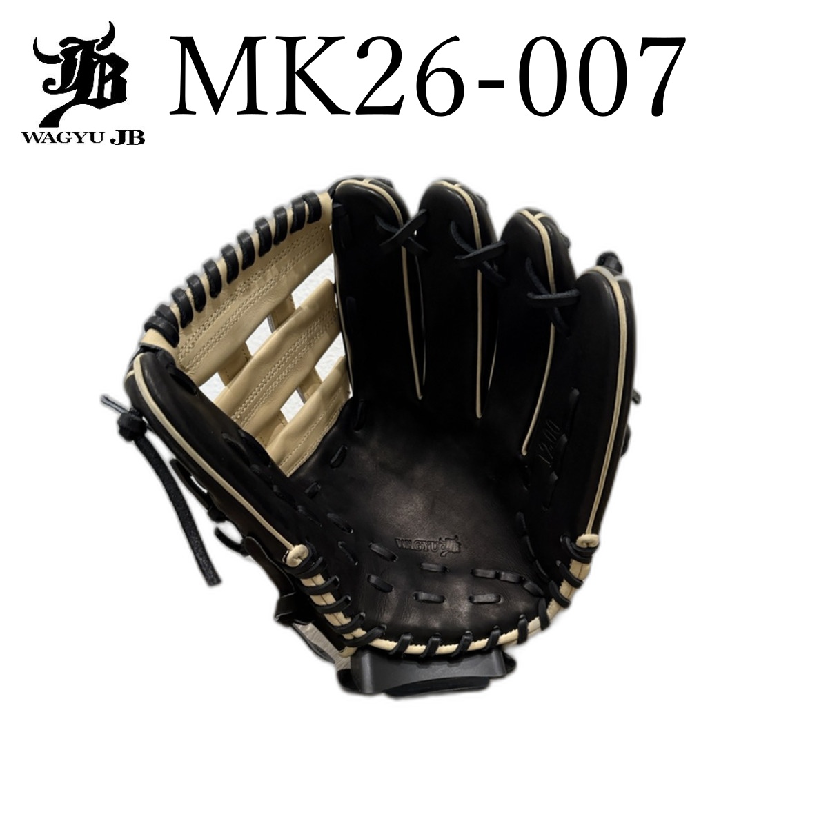Premium Wagyu JB Tatis Jr. signature model outfielder baseball glove. 12 inches, featuring elegant black and camel leather construction. Made in the Philippines with professional-grade materials.